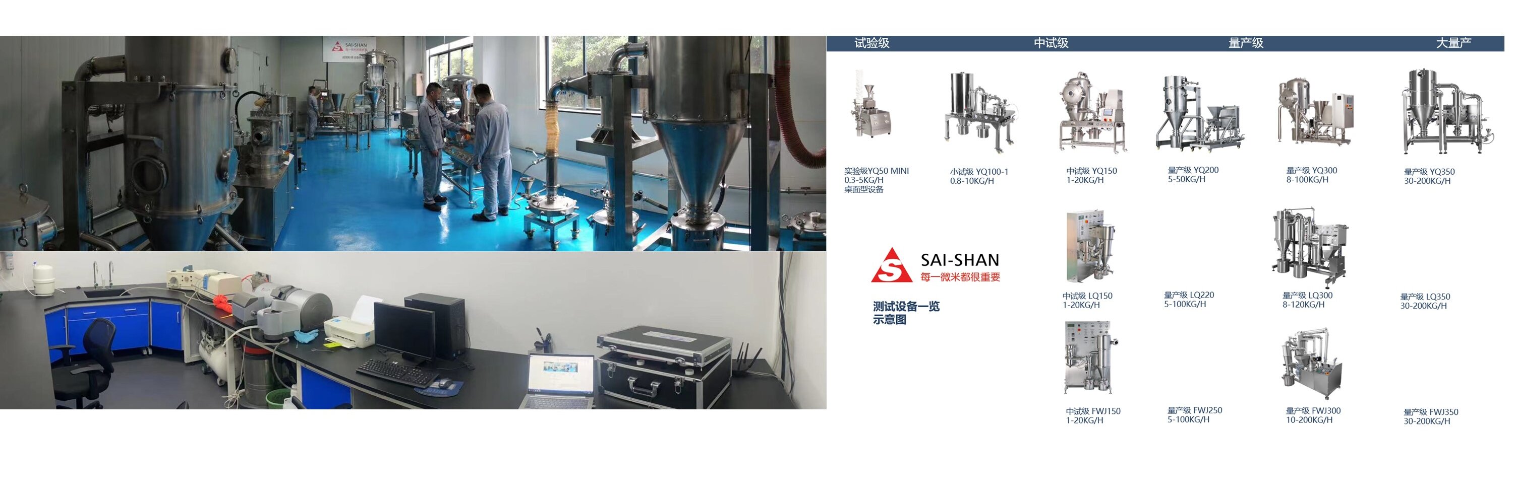 氣流粉碎機(jī): YQ50MINI試驗(yàn)級(jí)氣流粉碎機(jī) YQ100 試驗(yàn)級(jí)氣流粉碎機(jī) (PTFE內(nèi)襯)(針對(duì)化學(xué)原料藥) YQ100試驗(yàn)級(jí)氣流粉碎機(jī) (工業(yè)陶瓷內(nèi)襯)(針對(duì)超硬物料) LQ150流化床氣流粉碎機(jī) YQ150 小試級(jí)氣流粉碎機(jī) (PEEK內(nèi)襯)(針對(duì)化學(xué)原料藥) (可使用氮?dú)鈿庠?,針?duì)防爆性能測(cè)試) YQ200中試級(jí)氣流粉碎機(jī) (可使用氮?dú)鈿庠?,針?duì)防爆性能測(cè)試) YQ300 量產(chǎn)級(jí)氣流粉碎機(jī) (PTFE內(nèi)襯)(針對(duì)化學(xué)原料藥) (可使用氮?dú)鈿庠?,針?duì)防爆性能測(cè)試) LQ300流化床氣流粉碎機(jī) YQ350量產(chǎn)級(jí)氣流粉碎機(jī) (工業(yè)陶瓷內(nèi)襯)(針對(duì)超硬物料)