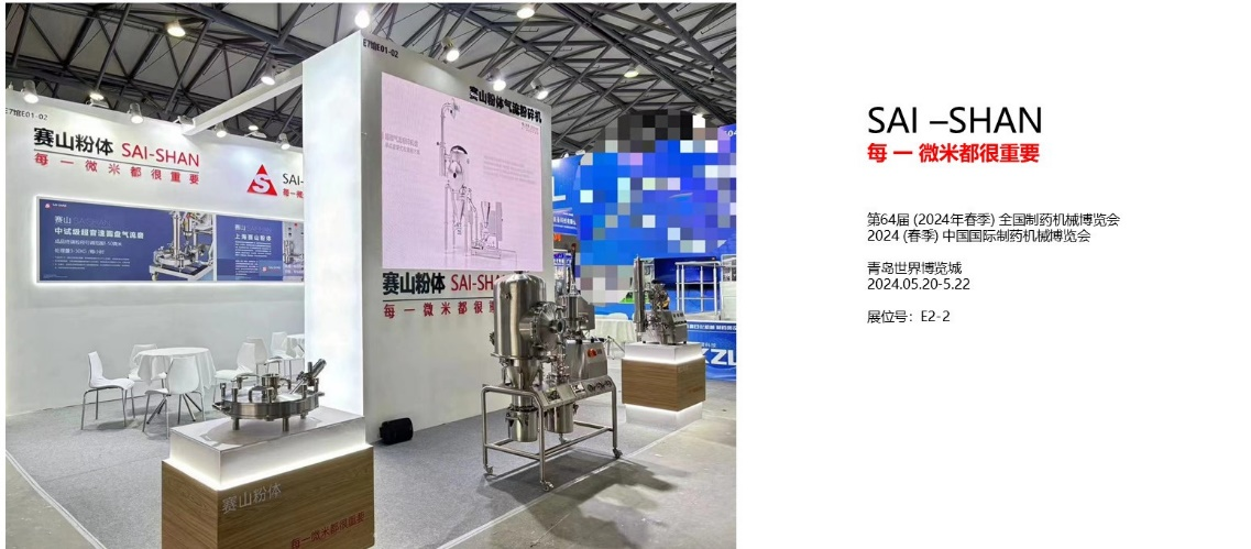 第64屆(2024年春季)全國制藥機(jī)械博覽會(huì)暨2024(春季)中國國際制藥機(jī)械博覽會(huì)于5月20-22號(hào)在美麗的青島舉辦。海內(nèi)外1500多家制藥裝備生產(chǎn)及服務(wù)企業(yè)與數(shù)萬醫(yī)藥行業(yè)同仁將再度相聚青島世界博覽城,共襄行業(yè)發(fā)展盛舉! 賽山粉體攜帶最新設(shè)備亮相,與廣大客戶共聚一堂。